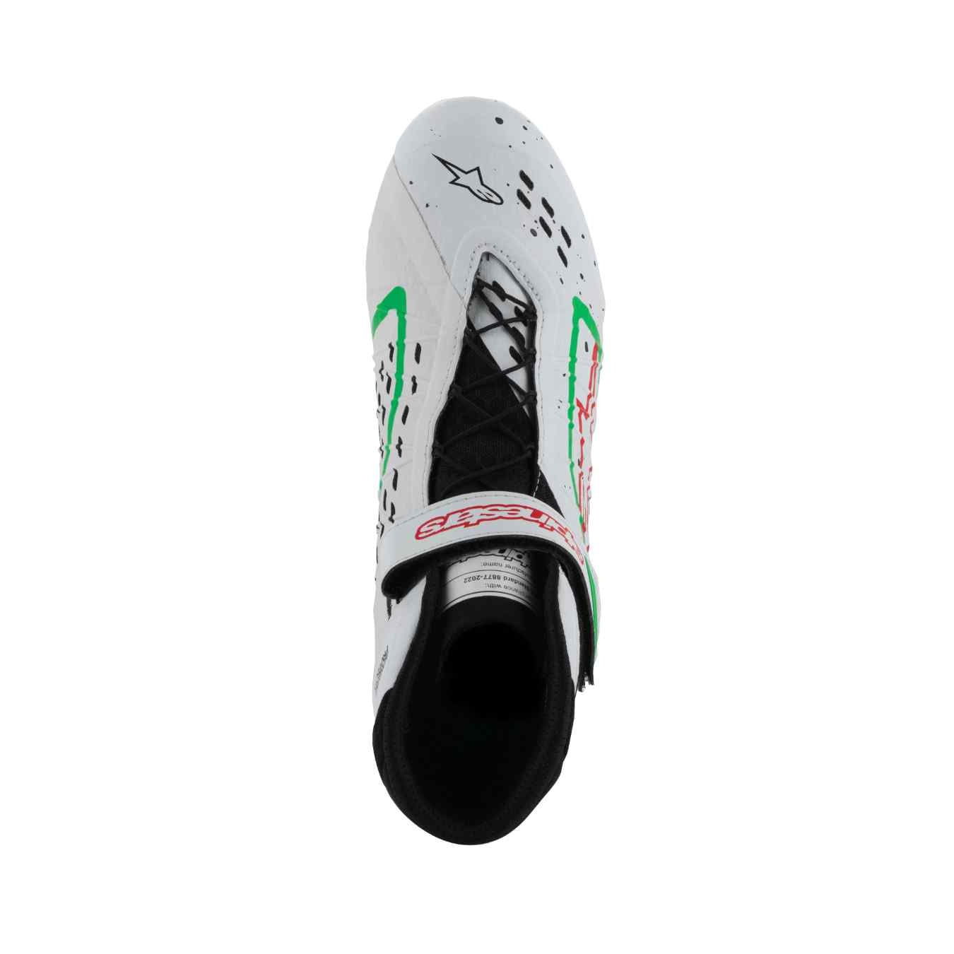 Bottines Karting ALPINESTARS TECH-1 KX V3 FIA 8877 2022 Blanc Vert Rouge