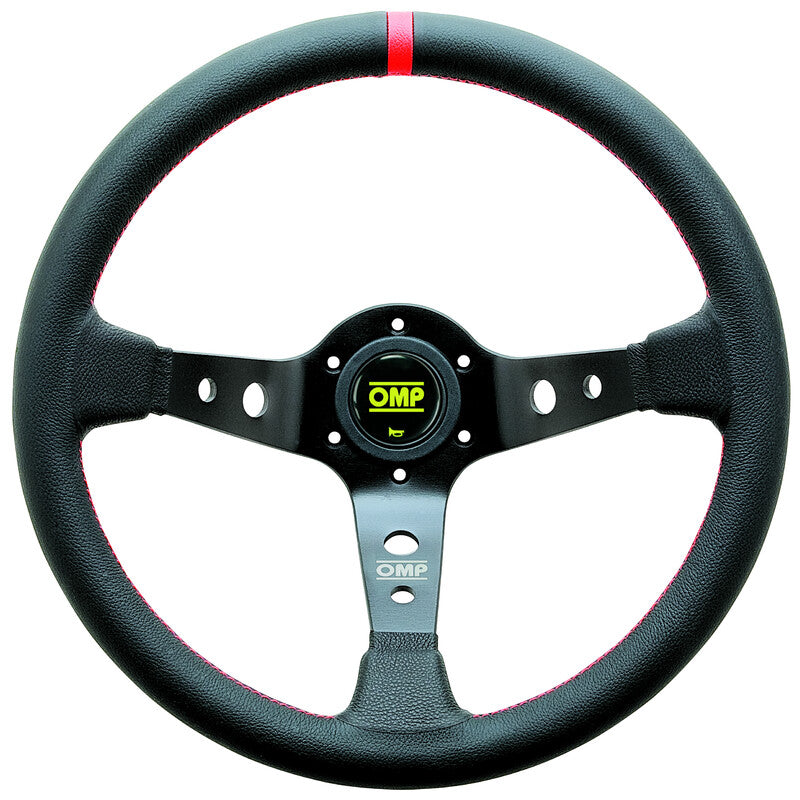 Volant OMP Corsica Tulipé (95 mm), Cuir Noir, Branches Noires, Coutures Rouges Diam. 350mm
